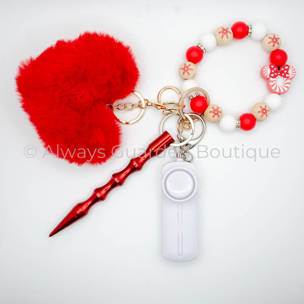 Candy Cane Christmas Mouse Safety Keychain - Festive Holiday Protection